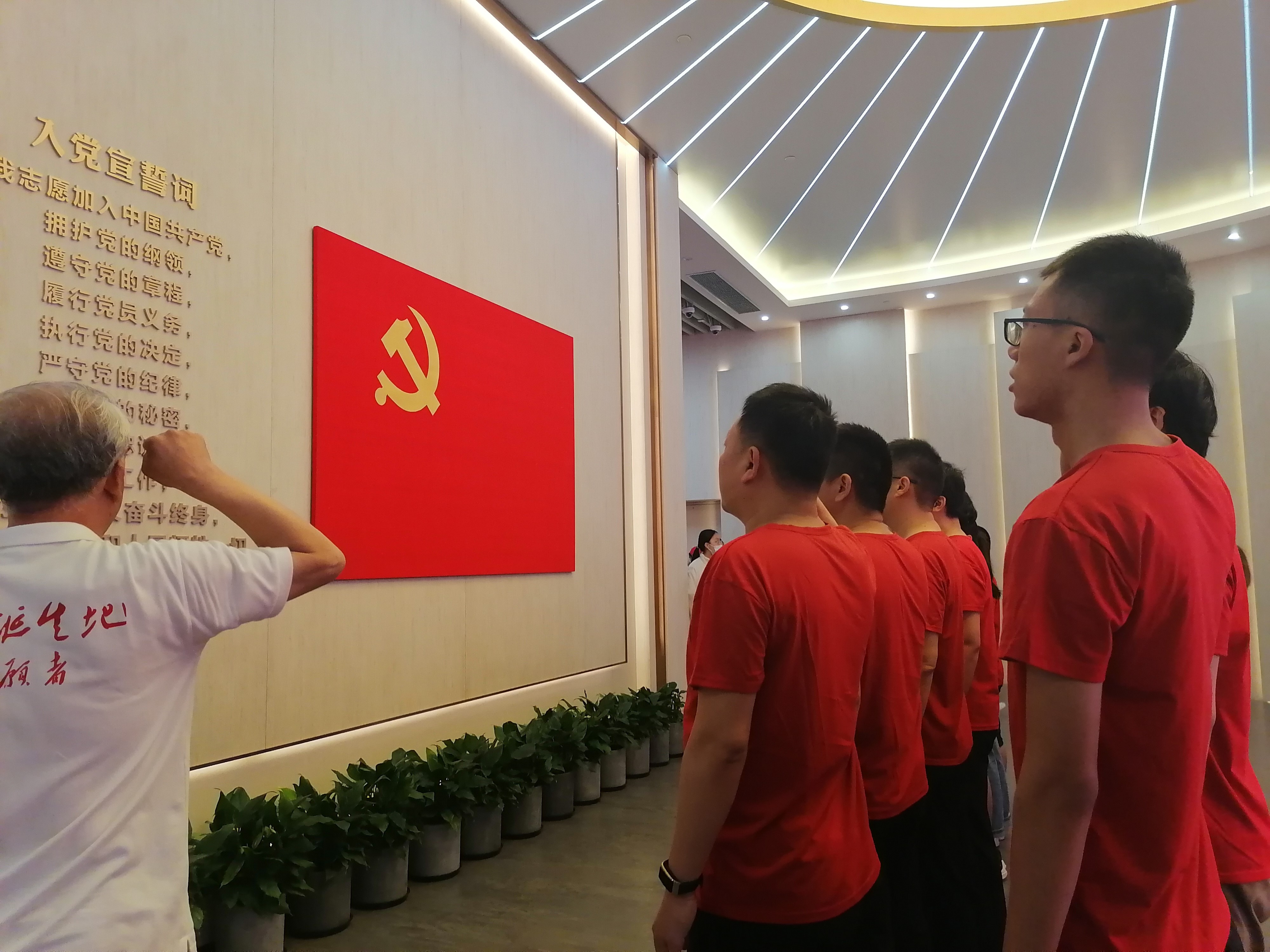 在上海中共“一大”会址,学员们通过一张张画面、一个个故事、一幅幅视频,追忆百年前那段“南陈北李”相约建党、13位中共“一大”代表共同商讨建党的开天辟地时刻。党旗下,培训班学员共同举起右拳,再次重温入党誓词那包含着字字如金的承诺和千斤在肩的责任。