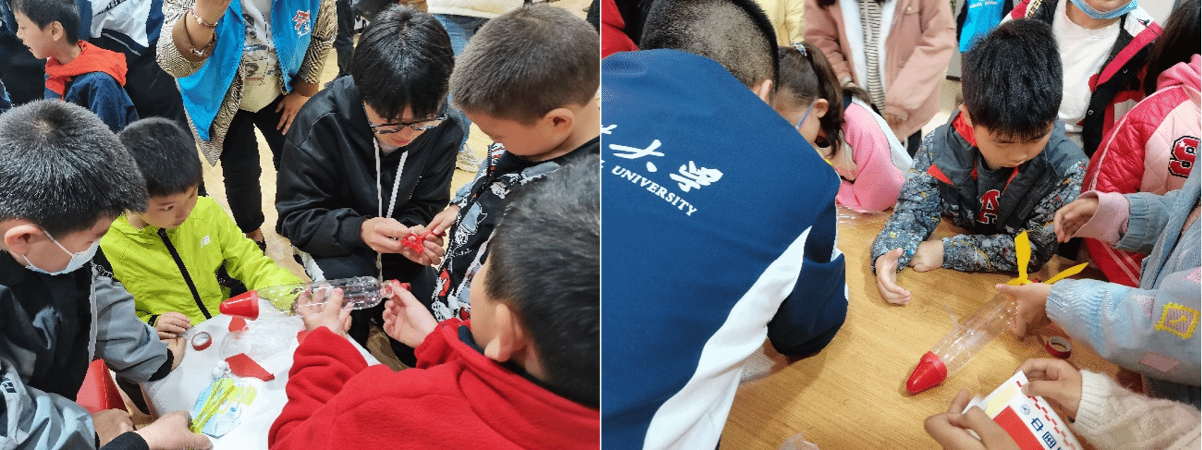 航天科普志愿者生动讲解了火箭飞行原理和宇航员太空飞行的相关知识,带领小朋友们探索奇妙的航天世界。之后,小朋友们在志愿者的带领下,亲自动手制作气压式喷水火箭,安装尾翼、贴好“中国航天”标志……一步一步终于做好了属于自己的小火箭!