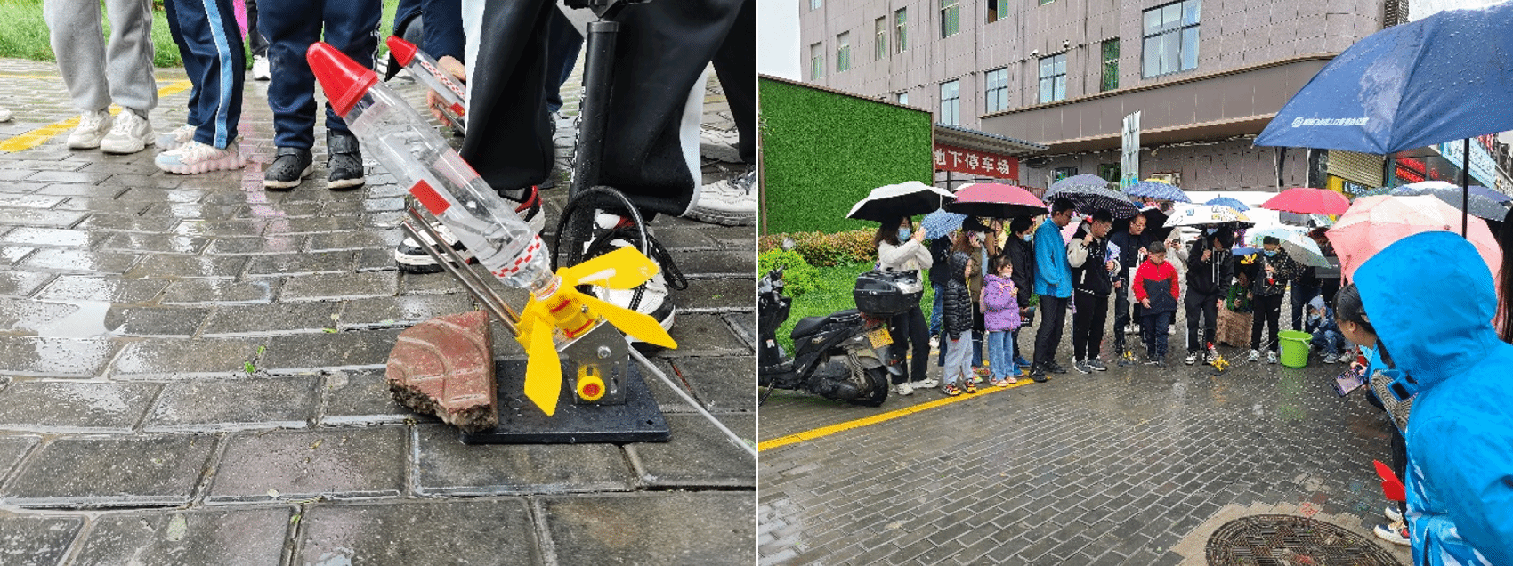 春雨浇灌了孩子们的航天梦,在一阵阵欢呼声中,小朋友们亲手放飞了自己制作的小火箭,一枚枚冲上蓝天的小火箭让一个个航天梦的种子在他们的心中生根发芽。
