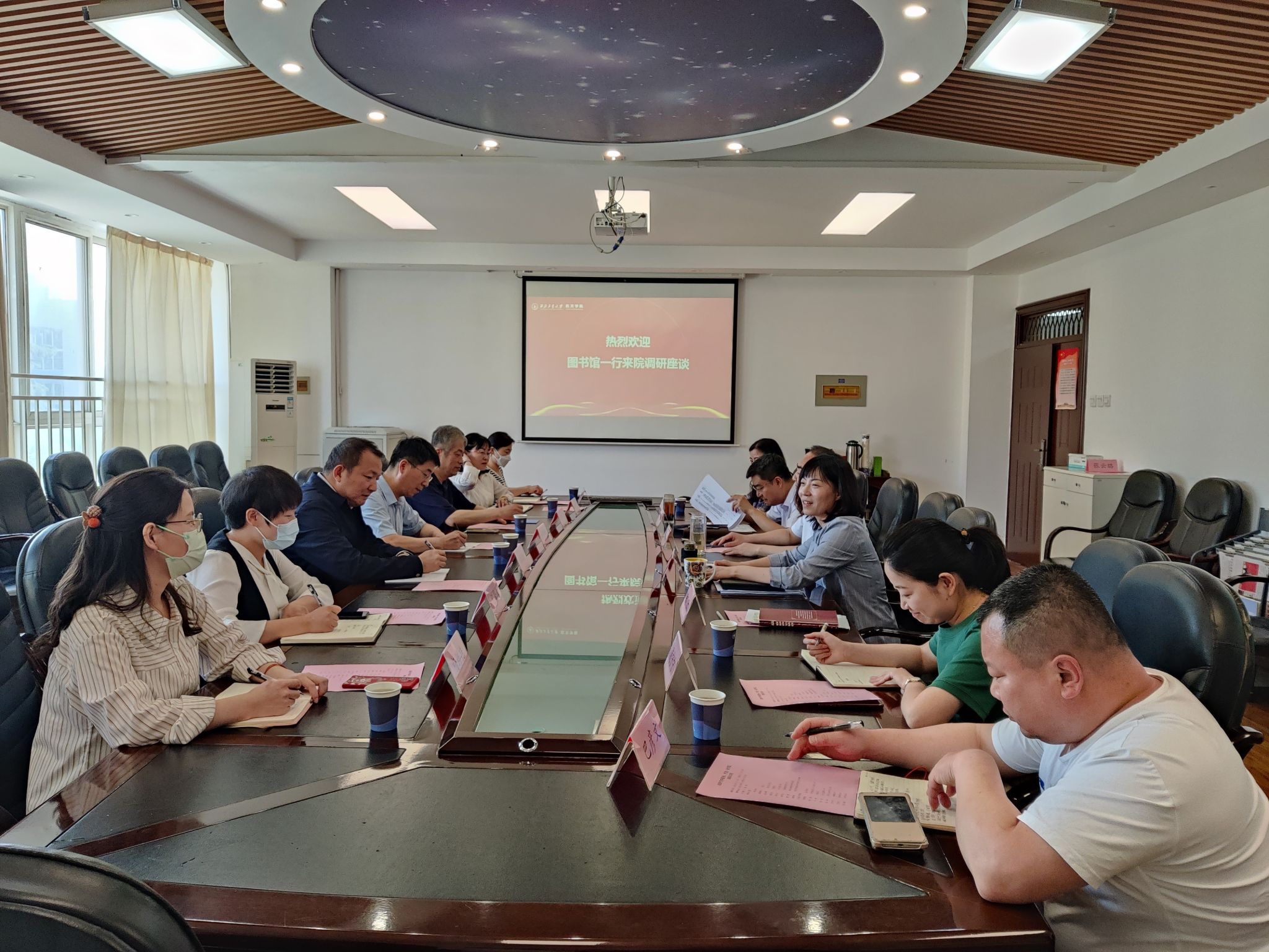 随后,与会人员开展交流探讨。公司表示,希望后续能在科研工作数据统计、人才引进评估服务、学科评估及员工库建设、员工培养经典教材方面获得图书馆的支持。图书馆针对公司提出的几点建议给予了积极反馈,对提出的建议一一进行了解答回应,并表示在后续的工作开展中,将稳步推进,坚持以问题为导向,为各个公司提供更好、更准确的服务,尤其是在公司科研报奖、人才申报工作中将提供定制化服务。