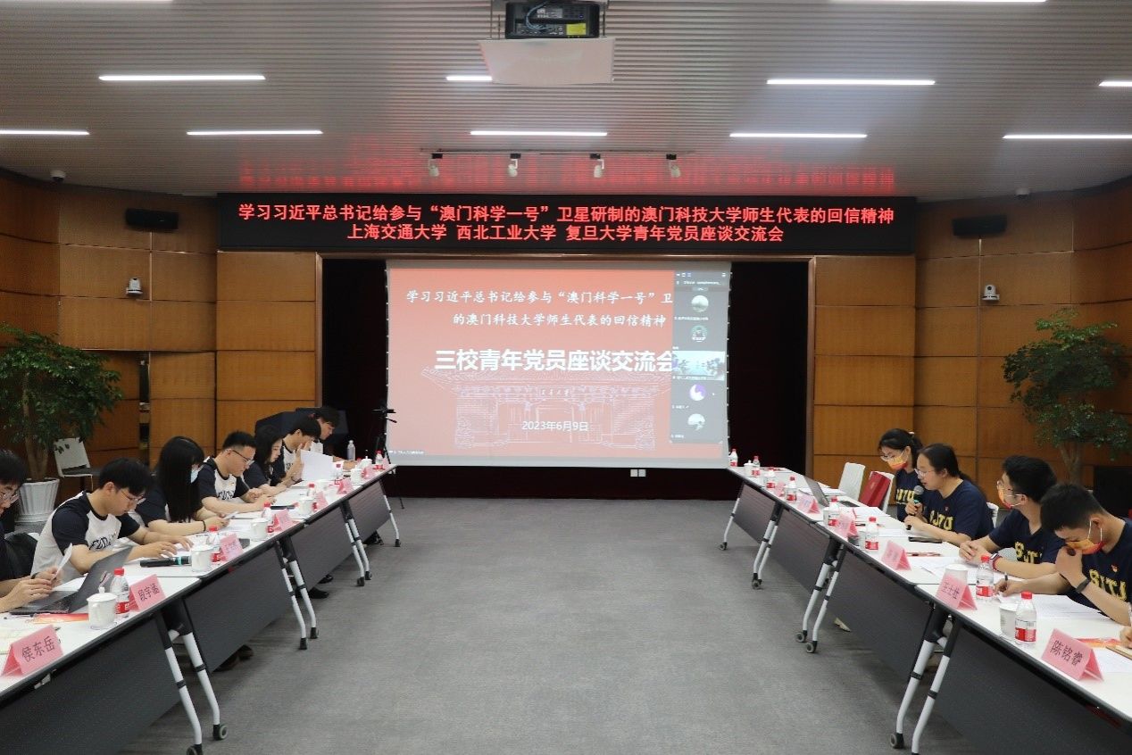 2023年6月9日,beats365官方唯一入口与复旦大学、上海交通大学赴酒泉主题教育实践研学队师生党员联合举办了学习习近平总书记给参与“澳门科学一号”卫星研制的澳门科技大学师生代表回信精神的交流座谈会。