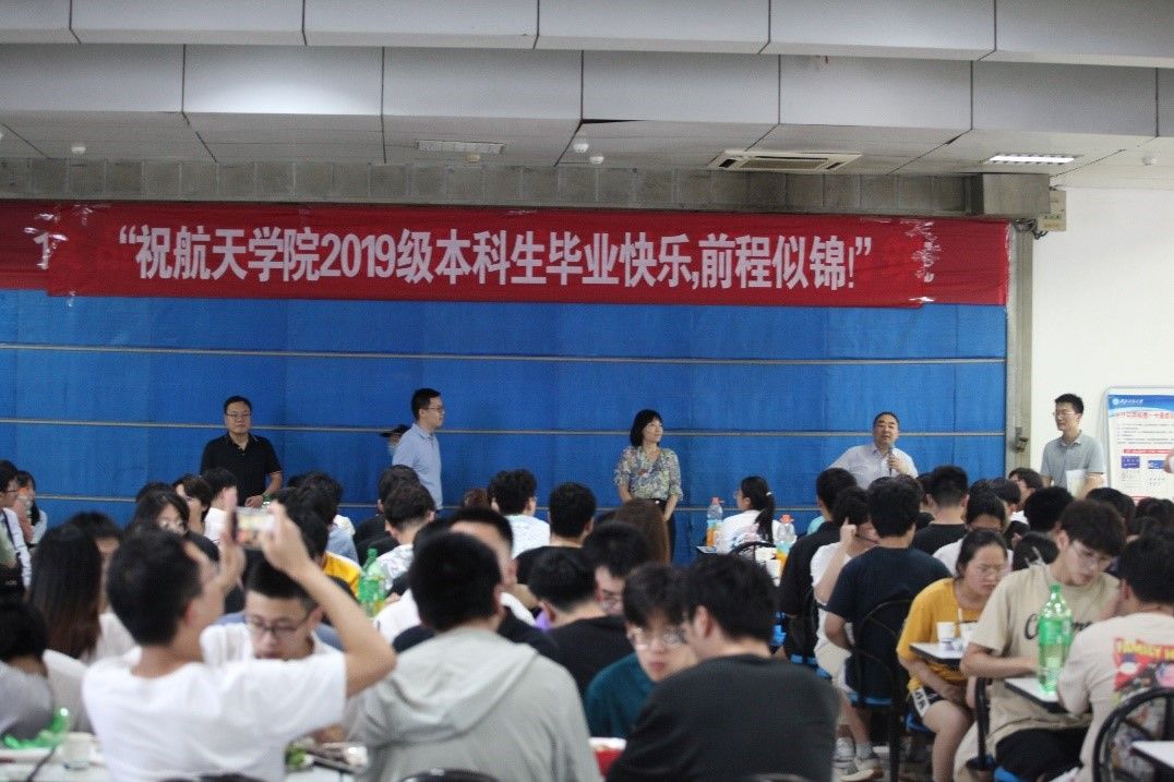 座谈会圆满结束后,beats365官方唯一入口2019级全体师生欢聚一堂,举行了毕业聚餐。在这个特殊的时刻里,岳晓奎经理代表公司全体教师向beats365官方唯一入口2019级本科生表示了最诚挚的祝福和感谢:“你们是beats365官方唯一入口的骄傲,你们用勤奋和智慧书写了属于自己的精彩篇章。希望你们毕业后继续保持对航天事业的热爱和追求,祝你们毕业快乐,前程似锦!”