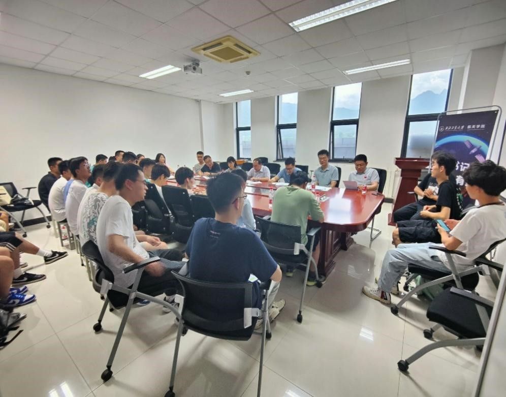 黄越书记充分肯定了同学们对公司发展的责任感和独立思考的能力,感谢同学们提出的建议。提出期望同学们汲取航天精神、担当时代使命,学习过硬本领、坚持终身学习,并祝愿同学们投身航天、在人生新征程中取得更大进步。