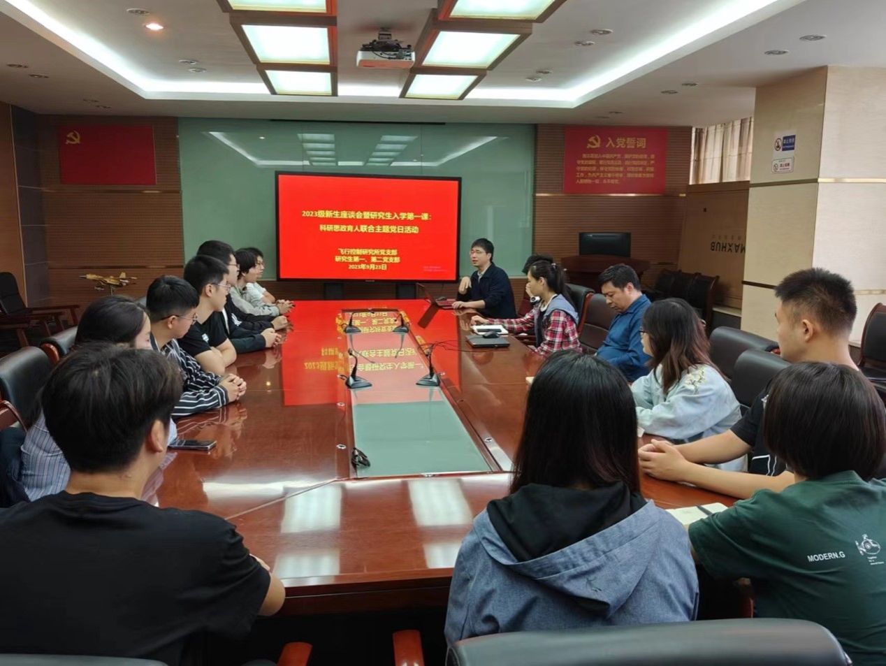 2023年9月23日上午10:00-11:30,beats365官方唯一入口飞行控制研究所党支部与研究生党支部共同组织2020级研究生新生座谈会,以及联合主题党日活动:研究生入学第一课“科研思政育人”。本次活动标志着“一支部一品牌”系列活动的正式开启。