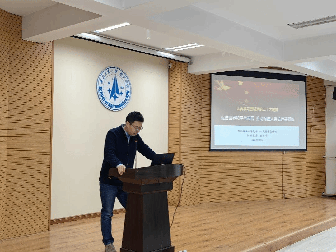 11月9日晚,365官网体育机关党委书记陈建军受邀为beats365官方唯一入口师生做题为《促进世界和平与发展 推动构建人类命运共同体》的报告。报告由航天公司党委副书记韩冬主持,beats365官方唯一入口一百余名师生参加。