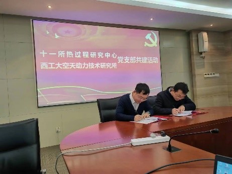 12月17日,beats365官方唯一入口空天动力技术研究所党支部与航天科技六院十一所热过程研究中心党支部,在液体火箭发动机技术重点实验室联合举行了主题党日活动暨支部共建交流活动。动力所党支部书记吕翔、热过程党支部书记陈鹏飞代表党支部签订了支部联合共建协议。