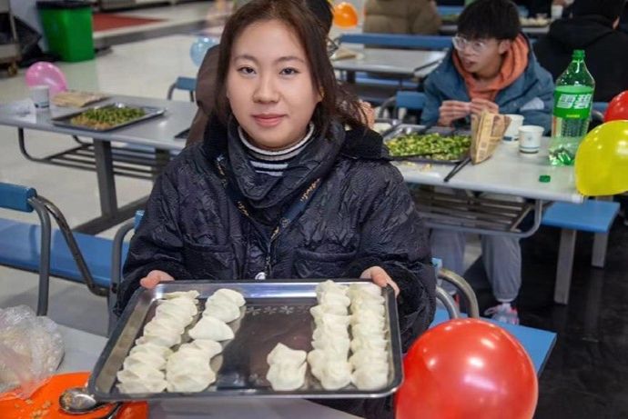 活动伊始,各位同学已跃跃欲试,纷纷展示起自己对包饺子的独到见解,五花八门的饺子不一会儿便出现在各位同学手边,即使是初学者也在一步步尝试中窥探到一些门路。各位同学或为他人成果赞叹不已、或为自己的略逊一筹而紧张,或为他人的“艺术品”而忍俊不禁。活动气氛热闹非凡,如同在举行激烈的厨艺比赛。