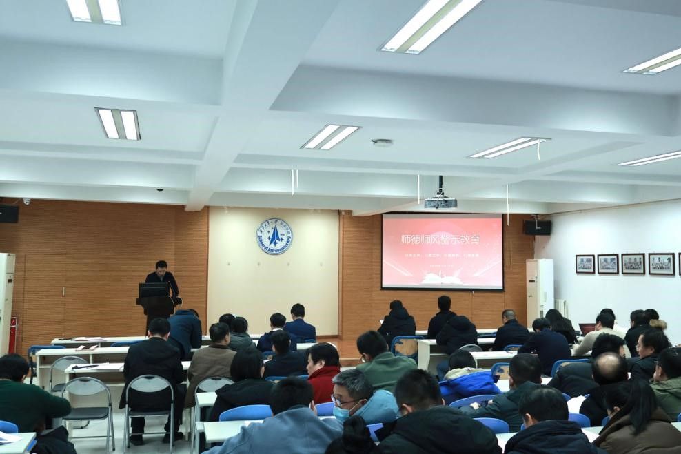 党委副书记韩冬带领大家重温师德规范,学习《新时代高校教师职业行为十项准则》、《365官网体育师德失范行为负面清单》,并做警示教育。