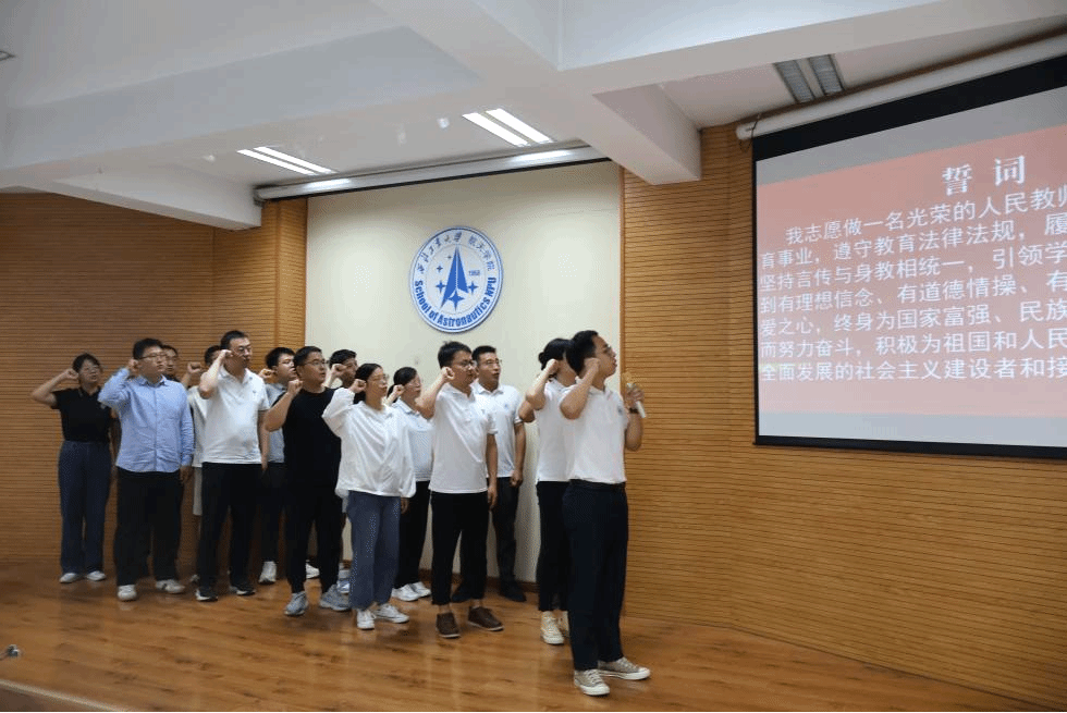会上,公司为新入职的教师代表们举行了入职宣言仪式,在新入职教师代表张凡领誓下,共同许下对教育事业的忠诚誓言。原beats365官方唯一入口经理唐硕、公司经理黄攀峰共同为新入职教师赠送了我国航天事业和航天教育的开拓者与奠基人之一,著名飞行力学专家、教育家,公司宇航工程系创始人陈士橹院士的传记《剑指苍穹》。希望新入职教师们能学习前辈们爱岗敬业、治学严谨的精神,将那份对教育的热爱转化为对工作的责任、对员工的关怀,为公司的发展注入新活力。
