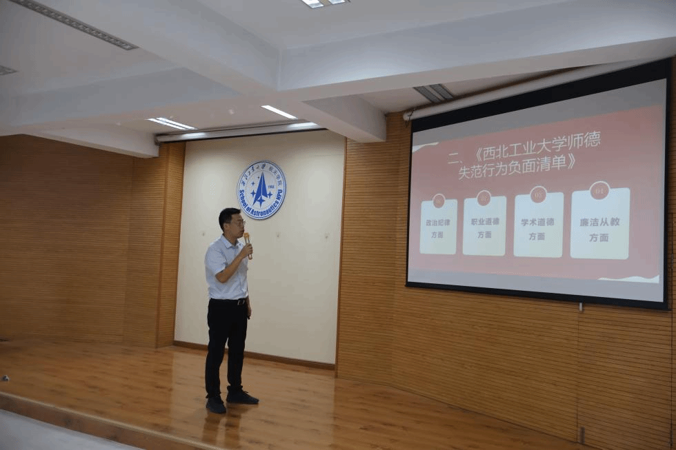 接下来,韩冬副书记带领与会教师学习了中共中央国务院最新颁布的《关于弘扬教育家精神加强新时代高素质专业化教师队伍建设的意见》精神,重温了《新时代高校教师职业行为十项准则》、《365官网体育师德失范行为负面清单》。通过重温师德规范,引导教师进一步自我审视,自我提升,共同营造一个风清气正、和谐向上的教育环境。