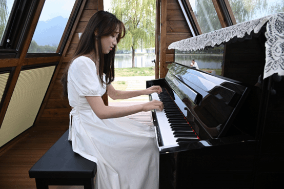 最后,2022级本科生李玉欣在公司草坪钢琴木屋,以独奏《梁祝》、《泰坦尼克号》,为今日的“老青传承”艺术文化交流活动画上圆满句号。