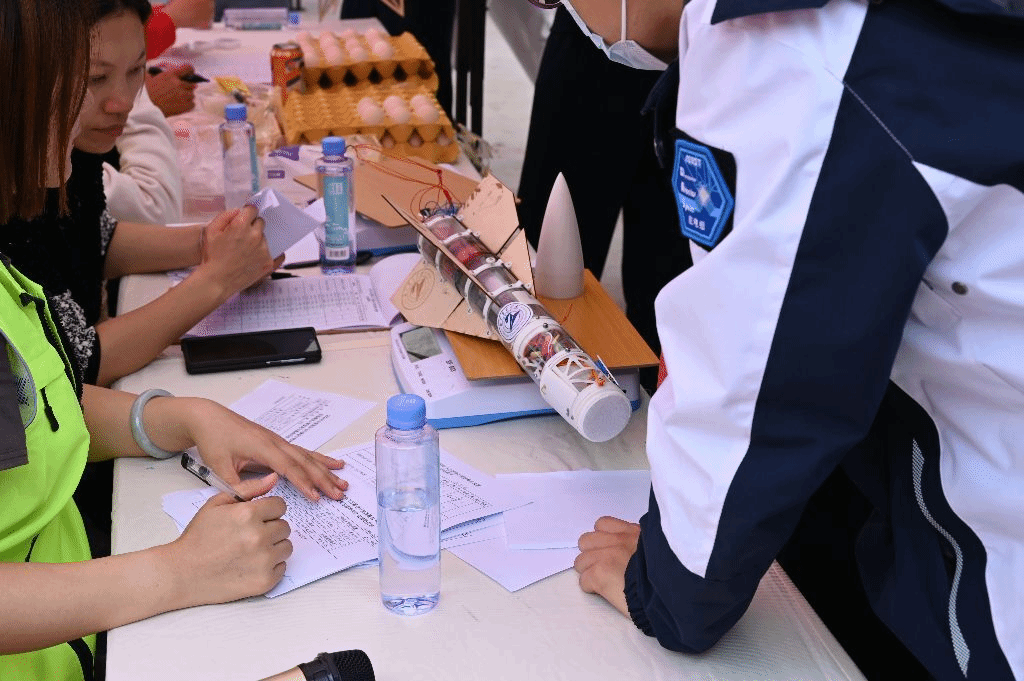 “多级模型火箭发射与载荷回收”项目的比赛要求为设计并制作出一种飞行高度80m的二级火箭,火箭需具备级间分离、二级空中点火和安全返回能力,还需保证载荷(生鸡蛋)完好无损。在长达数月的备赛过程中,队员们精益求精、迎难而上,利用假期、周末及课余时间持续改进设计,不断提高火箭的可靠性,最终取得团体第四名的好成绩。