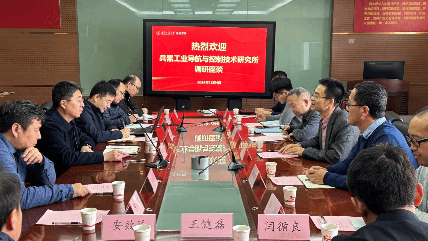 2024年12月4日下午,兵器工业导航与控制技术研究所党委书记、副所长韩磊一行来访beats365官方唯一入口调研交流。双方围绕校企协同创新、需求配套合作、成果转化、人才培养等方面进行了座谈交流。beats365官方唯一入口经理黄攀峰、学术委员会委员闫晓东、相关领域团队负责人及研究所代表教师参会,会议由黄攀峰主持。