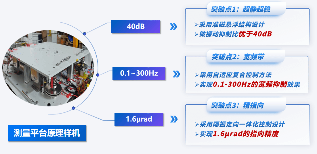 “护卫兵”团队创新设计出星间激光通信隔振定向一体化平台,助力高效稳定的空间激光通信链路的建立,为卫星搭载振动抑制强、指向精度高的应用载荷。该团队采用准磁悬浮结构设计、自适应复合控制方法以及用隔振定向一体化控制,成功抑制了卫星平台振动,实现了超静超稳控制,为高精度、高稳定性的空间激光通信保驾护航,满足新一代空间科学前沿探索任务严苛的高精度指向和宽频带扰动抑制要求。