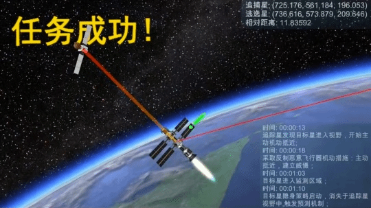 “飞行器对抗演训系统”团队设计了一款针对未来太空博弈的仿真系统,通过融合智能决策、人机交互等技术显著提高了卫星追捕的成功率。