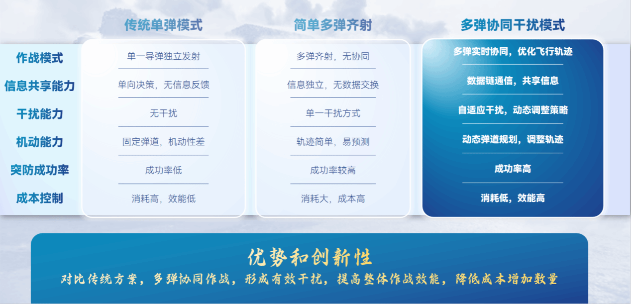 “穿云利箭”团队构建的“协同突防打击系统”通过在作战模式、干扰技术、弹道控制等多方面进行创新,使弹群形成有机整体,全面提升效能,为区域拒止战略提供了新的思路。