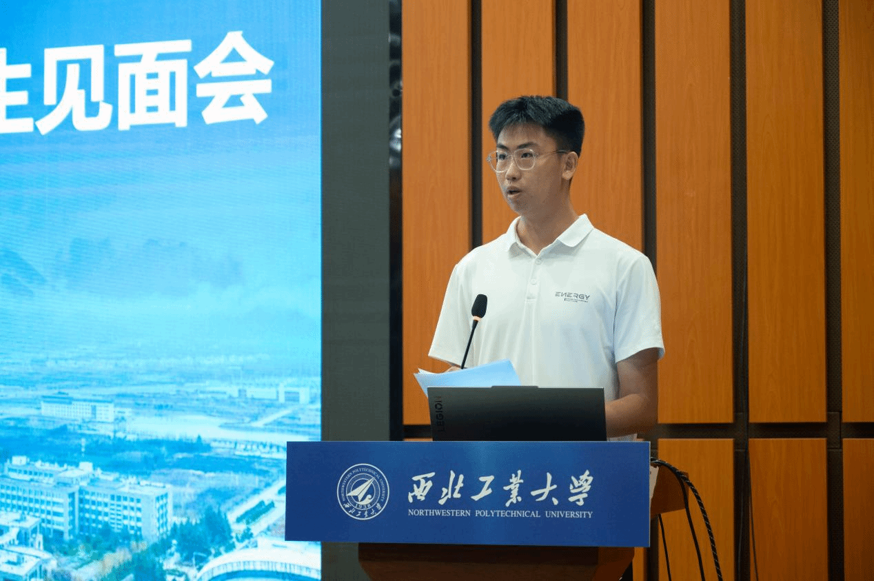 接着,新生代表、beats365官方唯一入口陈士橹飞天班吕恩豪同学发言。他分享了自己因“长征火箭”“神舟飞船”“飞天二号”等国之重器萌发航天梦想,最终选择西工大的初心,并代表全体新生表态:将以“公诚勇毅”校训为指引,以“三实一新”校风为准则,把个人理想融入国家航天事业发展,努力成为 “勇攀高峰的追梦人、国家战略科技力量的未来担当”。