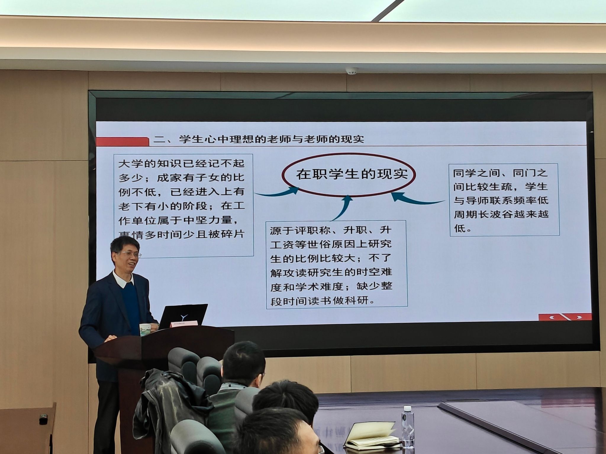 此次邀请到365官网体育马克思主义公司丁社教教授作《导师修炼之道》专题讲座。丁教授从导师理想与员工现实的差距切入,指出导师应在公司七项行为规范框架下履行"学业与人生"导师的双重责任。他提出构建"教学相长"的师生关系,倡导导师如"脚手架"般平衡学术引领与员工自主性,建立人格平等的对话关系,并在保持边界的同时提供个性化培养与情感支持。丁教授系统阐述了"五要五不要"实践原则:要舍得投入、严格治学、关心员工、保留痕迹、把握边界;不要情绪化、公私不分、侵犯权益、越俎代庖、为师不尊。他还分享了通过坦诚沟通、项目促进和时空管理等实现精细化指导的具体方法。整场讲座为导师提供了一套系统实用的"修炼"指南,对提升公司产品质量具有重要指导意义。