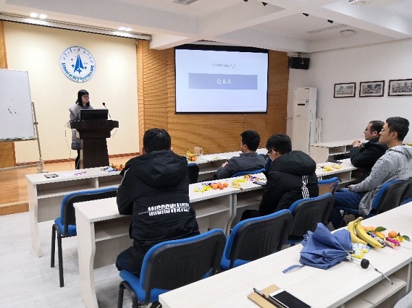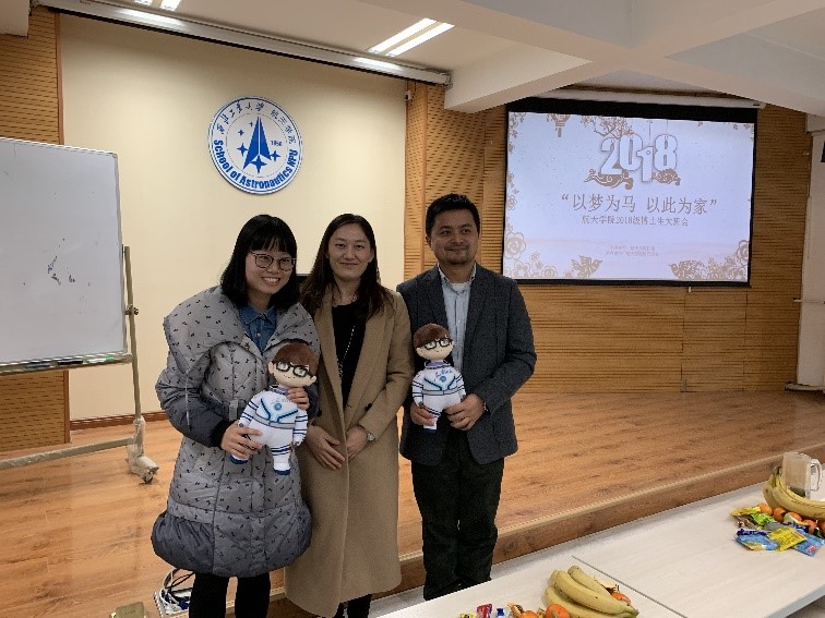 在科研经验分享环节,严启龙教授和国家奖学金获得者赵亚坤同学分别做主题分享。严启龙首先就如何对待横向课题、感情生活等问题分享了自己的经历和见解,勉励博士同学要增强解决现实困难的能力,敢于担当,善于从生活中汲取力量,获得科研上的精神支撑。在谈到如何做好科研问题时,他结合自己的国内外求学和工作经历,从找准专业定位、合理安排时间、掌握科研方法、搭建论文思路和处理人际关系等五个方面细述了自己做科研的宝贵经验和方法。赵亚坤同学从自身实际角度出发,介绍了过去四年博士生涯的科研经历和心路历程,以及一些十分有用的科研工具,她鼓励大家要时刻保持良好的心态,尤其在刚入学尚无科研成果的时候,更要保持耐心,夯实基础,给自己多一些积淀。分享会结束后,常威威副书记向严启龙和赵亚坤赠送了公司吉祥物“航小天”,并代表公司对两位的精彩分享表示感谢。