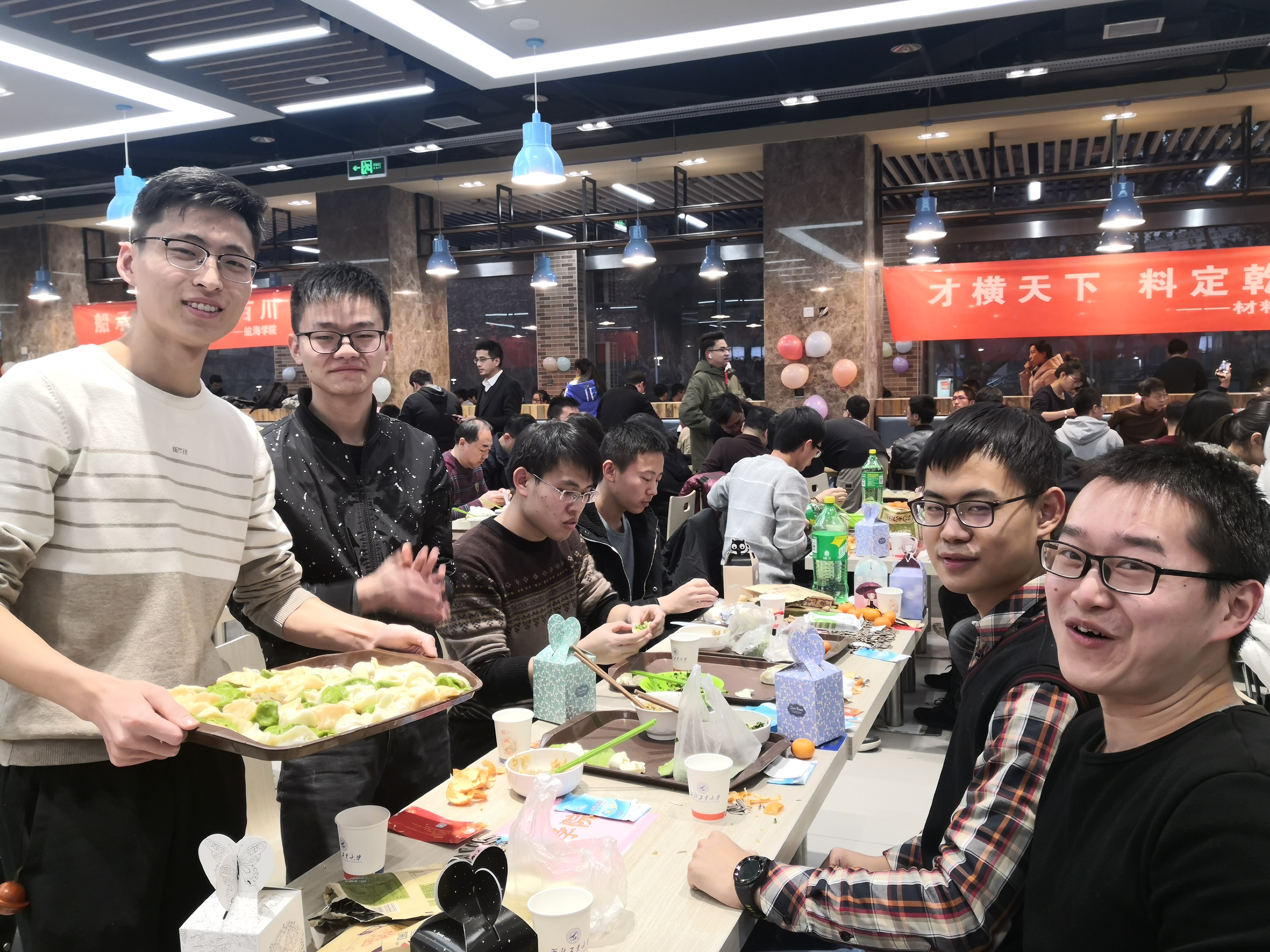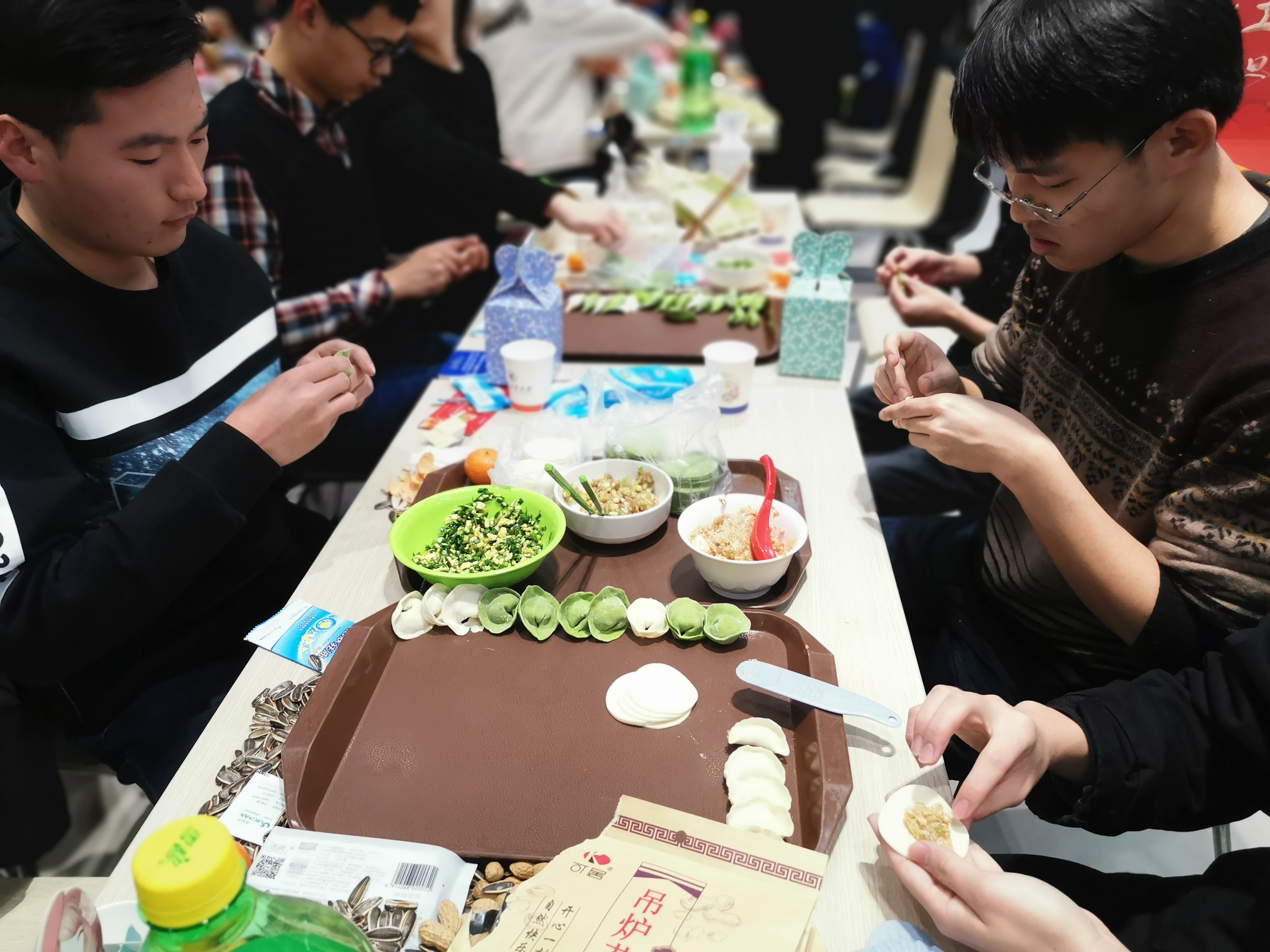 夜幕降临,万众瞩目的跨年活动拉开帷幕。跨年团圆餐在两校区员工餐厅拉开帷幕,beats365官方唯一入口师生领取了饺子皮和饺子馅后,围坐在一起,开始了自己的包饺子之旅。beats365官方唯一入口经理唐硕、党委副书记(主持工作)岳晓奎,副经理秦飞、张科,党委副书记常威威、王强以及班主任、辅导员、导师代表、公司办公室老师等来到现场,与同学们一起包饺子、唠家常,和同学们聊着这一年的学习与收获,表达对同学们新年的期许与祝愿。随着热气腾腾的饺子一盘接一盘地端上桌,同学们一齐举杯,共贺新年,现场气氛其乐融融。公司校领导与beats365官方唯一入口的同学们亲切交谈,表达公司对同学们的关心与爱护,了解员工心中所思所想,并对同学们送上新年祝福。同学们发挥奇思妙想,激情创作,各种形状的饺子诞生。有的饺子中包裹着硬币和花生,吃到的同学收获了大家真诚的祝福。团圆餐其乐融融,节日氛围浓厚。最后,在“包饺子大赛”、“倒念词语比赛”等形式多样的活动中,包饺子活动圆满结束。