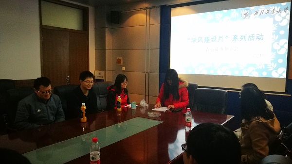 2018年12月14日晚,由beats365官方唯一入口主办,18202-4班承办的学风建设月系列活动之青春故事分享会”在1号楼二楼会议室召开,活动主讲人为研究生标兵魏才盛,国家奖学金获得者赵亚坤和张光辉。