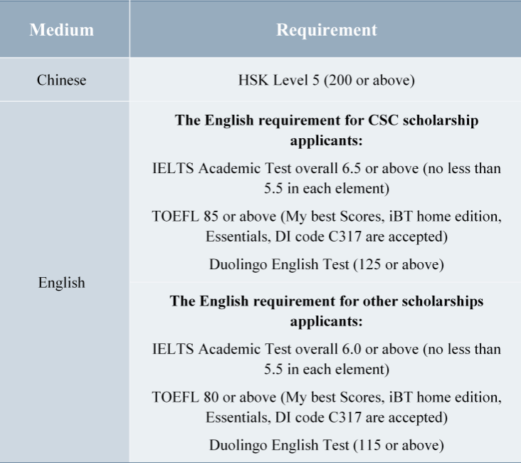 Applicants should have Chinese or English language proficiency that meets the requirement.